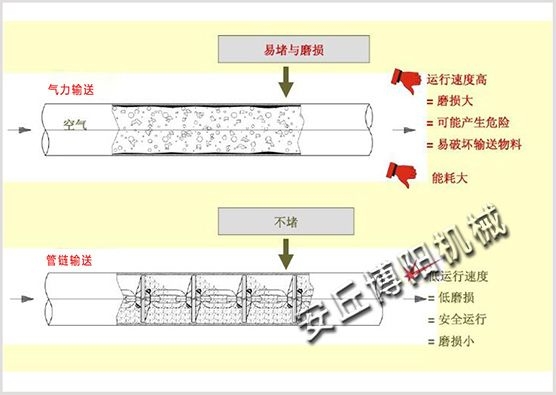 1、結(jié)構(gòu)緊湊,占用空間小,可以三維改變輸送方向,不受地形、角度與高度的影響;輸送過程在密閉的管路中進(jìn)行,無粉塵飛揚(yáng);