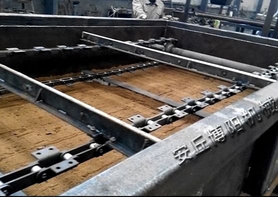 用刮板鏈牽引,在槽內(nèi)運(yùn)送散料的輸送機(jī)叫刮板輸送機(jī)。